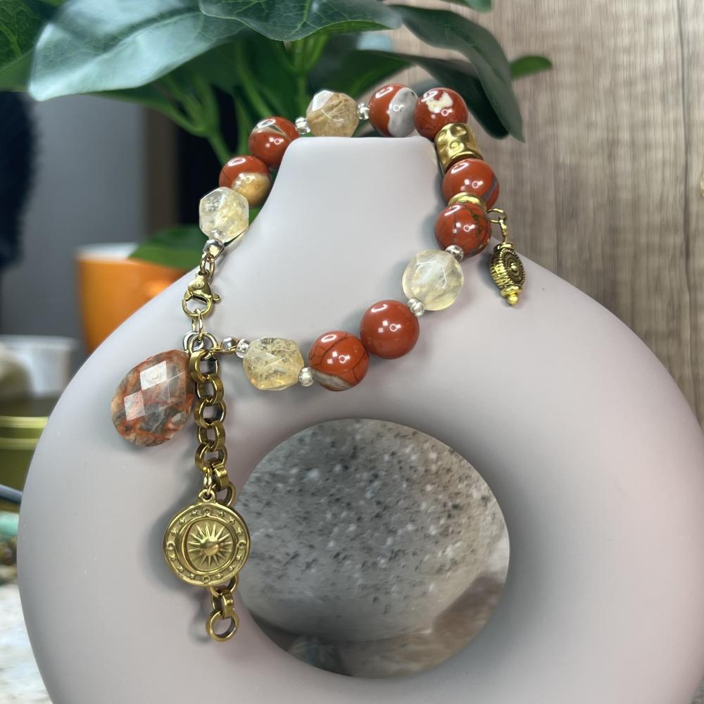 - الإسوارة: تجمع بين الجاسبر والسترين، لتضيف لمسة من الاستقرار الداخلي مع إشراقة إيجابية دافئة.