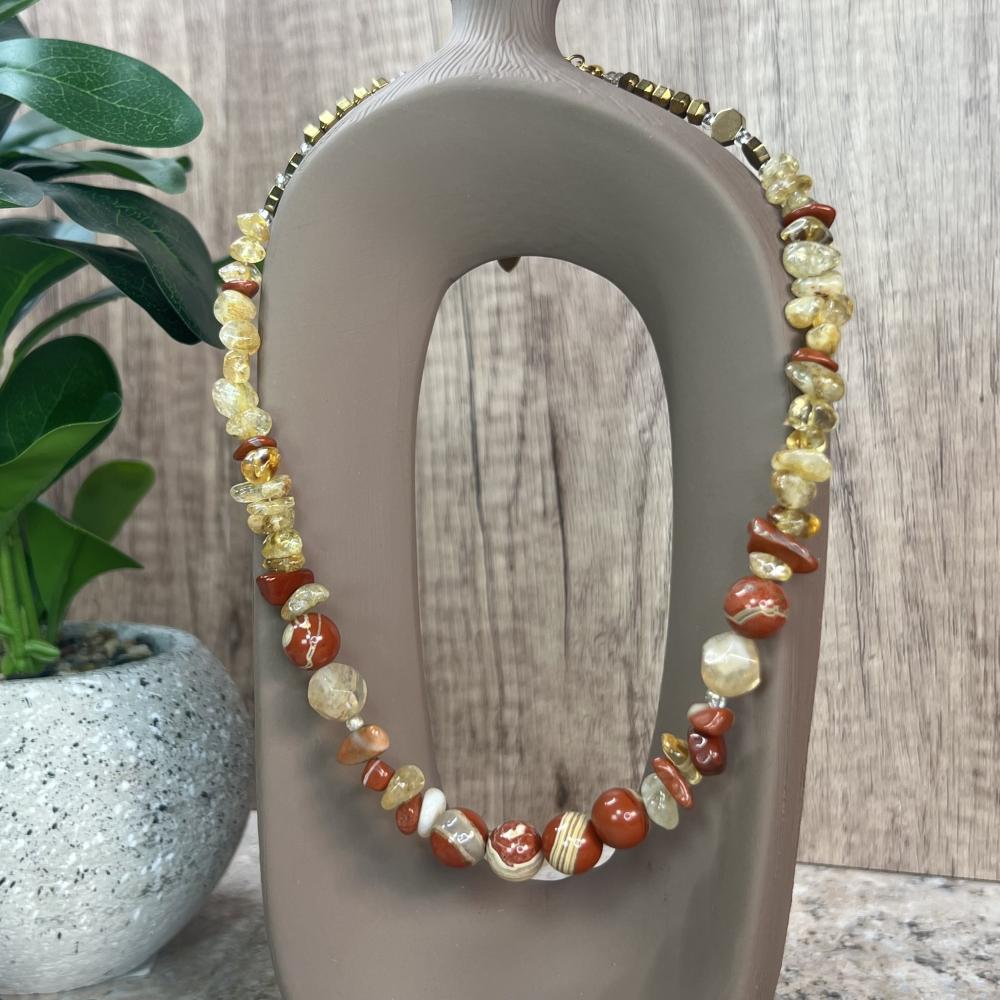 ✔️ أحجار كريمة طبيعية: جاسبر وستـرين (مع هيماتيت في القلادة)