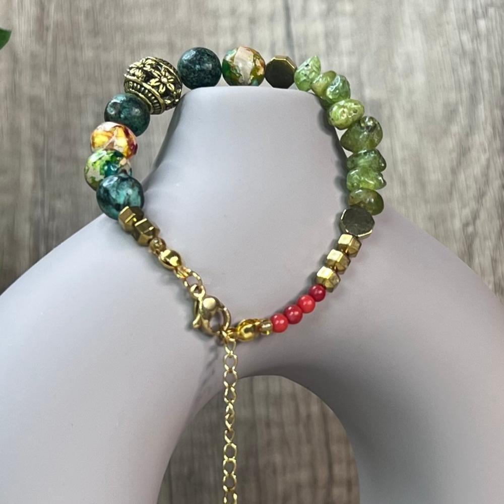 إسوارة مميزة تجمع بين جمال اليشم الأخضر الطبيعي 100% وسحر الزبرجد (Peridot) اللامع، مصممة لتكون أكثر من مجرد إكسسوار؛ فهي قطعة تحمل طاقة ومعنى: