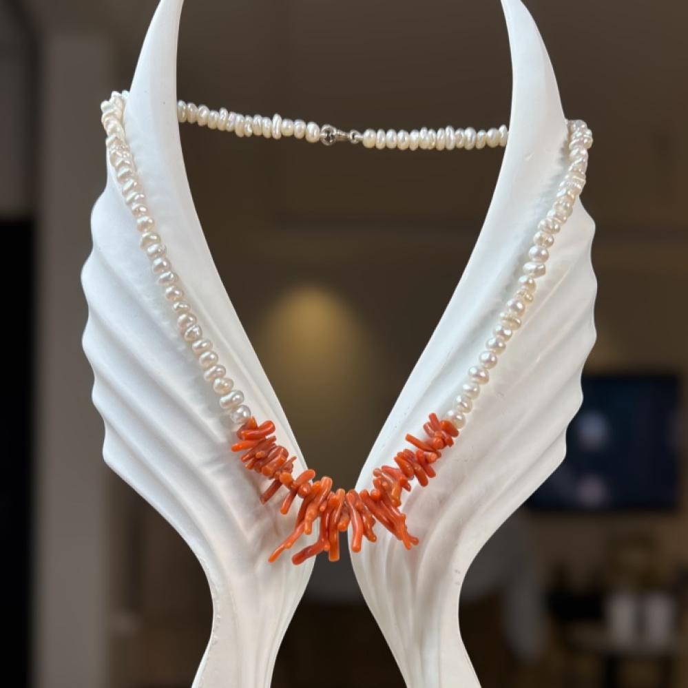 تصميم أنيق يجمع بين نعومة اللؤلؤ الطبيعي ودفء حجر المرجان بلونه الحيوي.