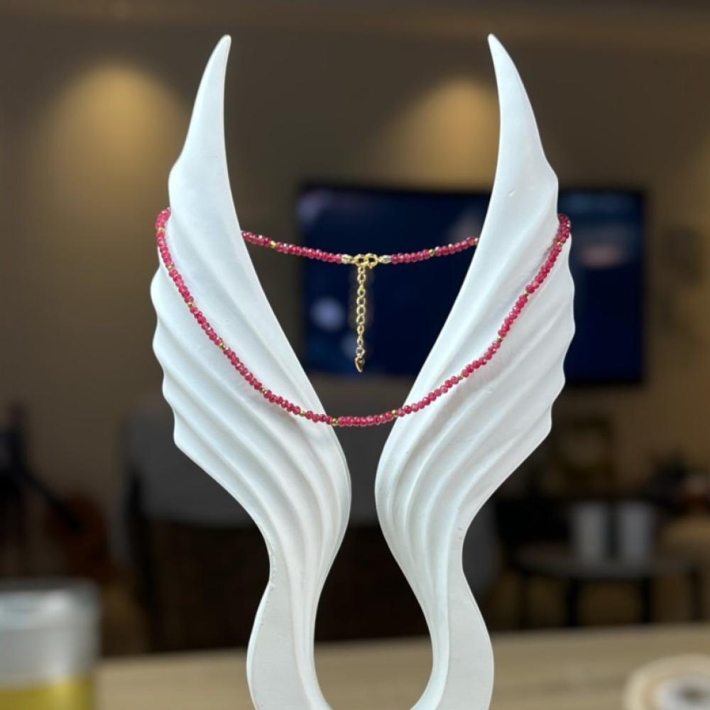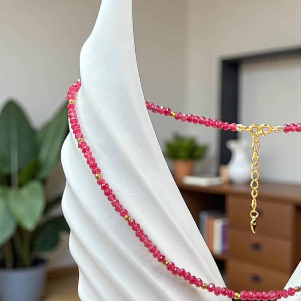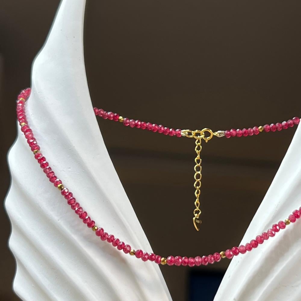 تشوكر فاخر مصنوع من حجر الياقوت الكريم الطبيعي بلونه الأحمر العميق الذي يرمز للشغف، القوة، والطاقة الإيجابية.
