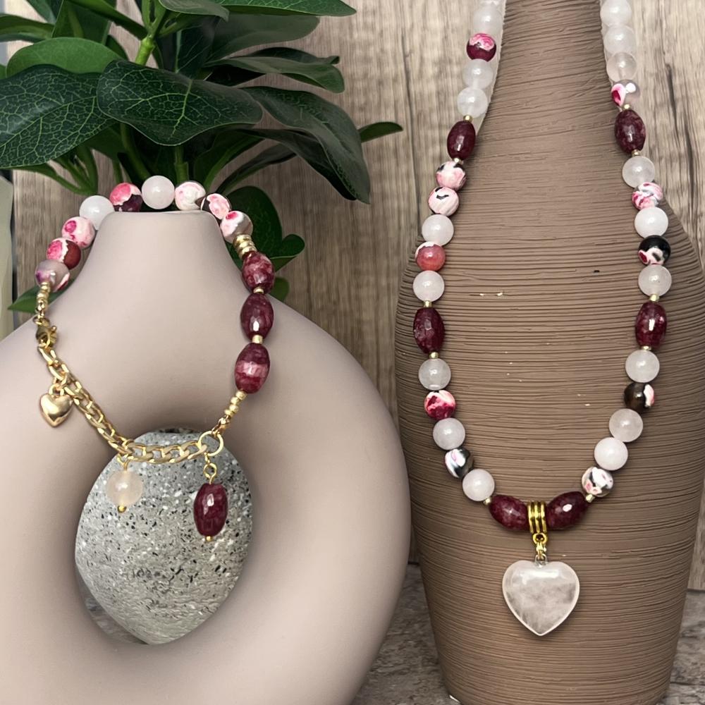 قلادة الروز كوارتز والأجات والياقوت – رقيّ الأحجار وسحر الألوان 🌸💎✨