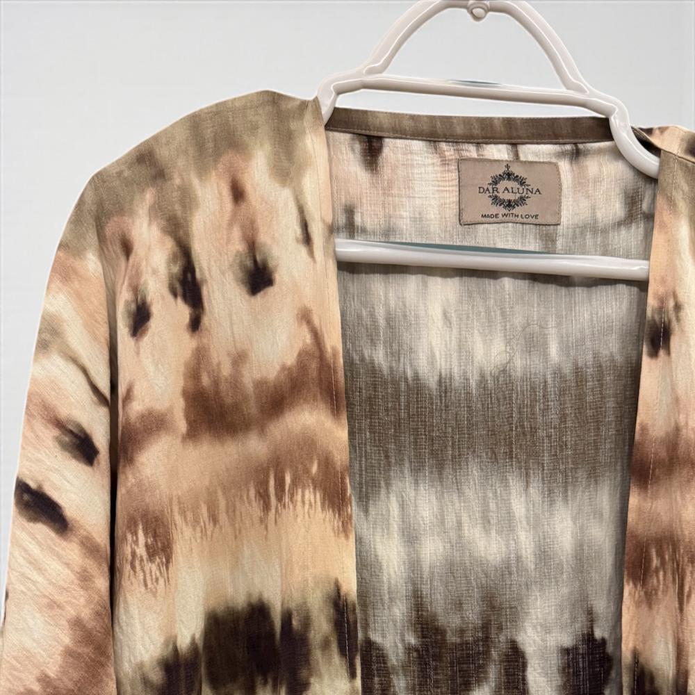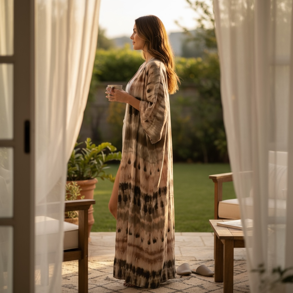 استمتعي بالراحة والأناقة مع هذه العباية الخفيفة المصنوعة من قماش الكشمير القطني الناعم، بتصميم تاي داي عصري يمنحك لمسة مميزة في إطلالاتك اليومية والكاجوال. تأتي بقصّة مواسع تمنح حرية في الحركة وانسيابية في اللبس، مع أكمام ثلاثة أرباع الطول لأسلوب عملي وأنيق.