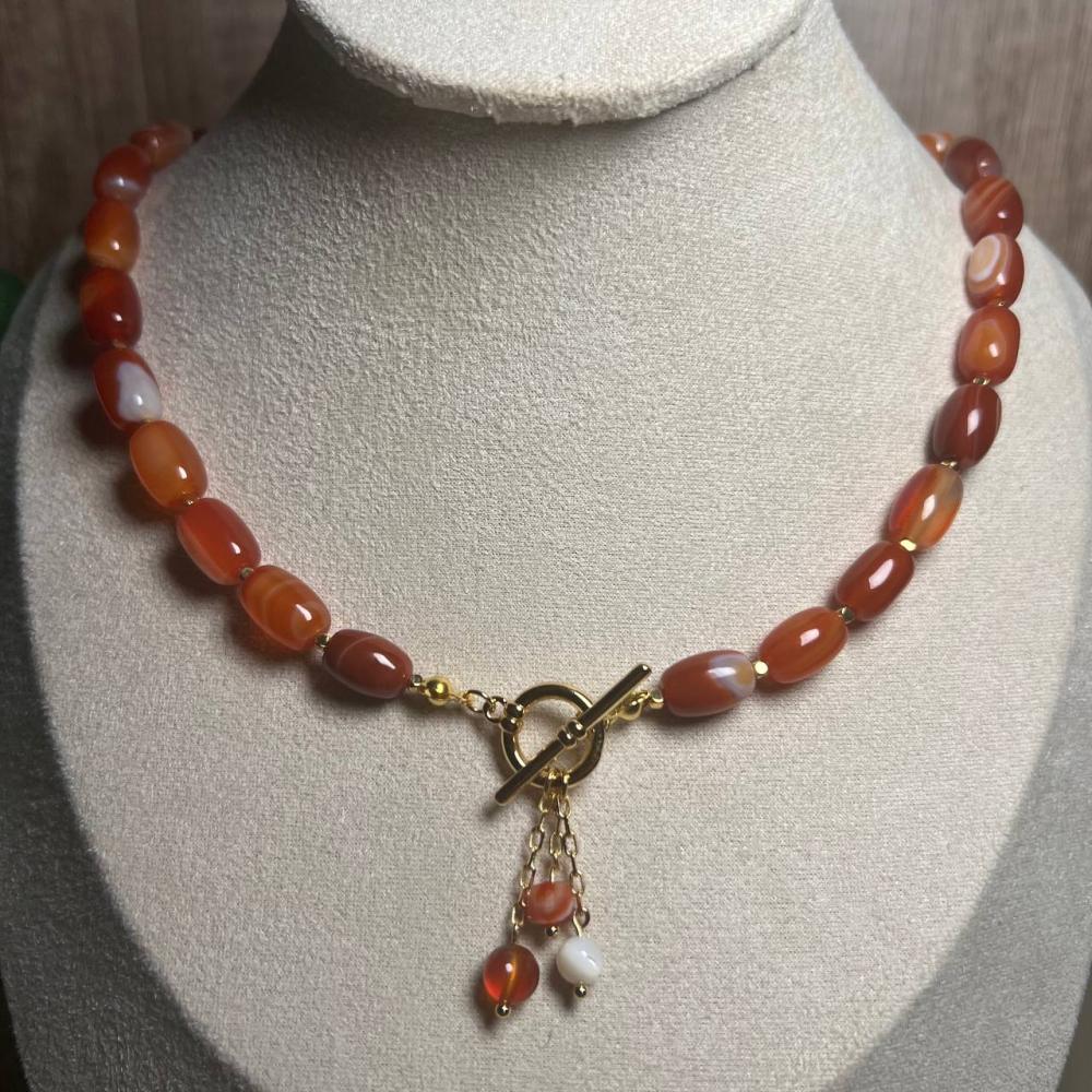 قلادة الأجات الأحمر – كارنيليانأبرزي حضورك الأنيق مع هذه القلادة المصنوعة من حجر الأجات الأحمر (كارنيليان) الطبيعي، المعروف بلونه الدافئ الذي يرمز للطاقة والشجاعة والإلهام.