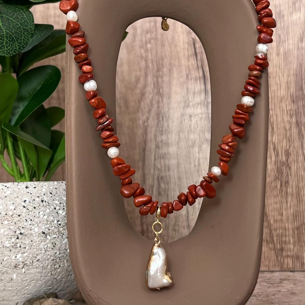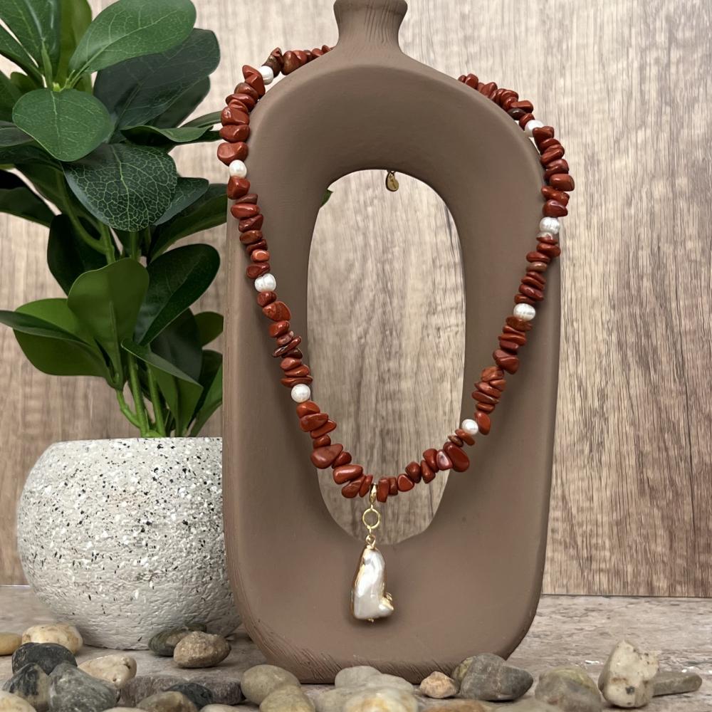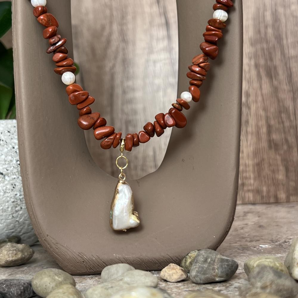 قلادة الجاسبر مع اللؤلؤ – تناغم الأرض وصفاء البحر
